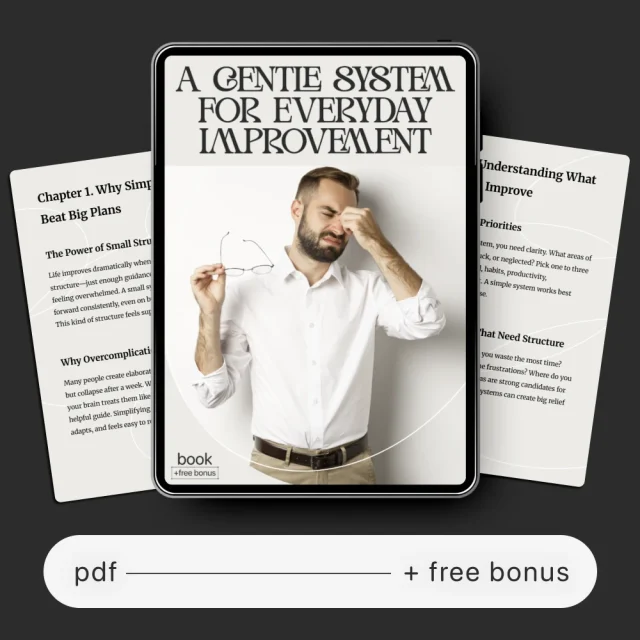 Big change doesn’t require big effort—it just needs the right system. Download A Gentle System for Everyday Improvement today and discover how to create a simple system for life improvement that keeps you calm, consistent, and moving forward—one easy day at a time.