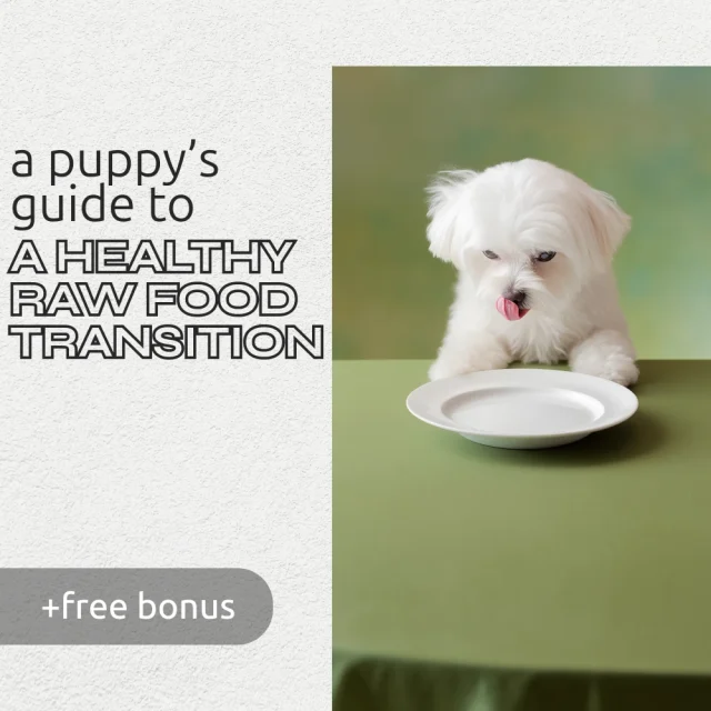 Give your puppy the gift of a strong, healthy foundation. Download A Puppy’s Guide to a Healthy Raw Food Transition today and take the guesswork out of raw feeding. Your puppy deserves the best—start now with confidence.