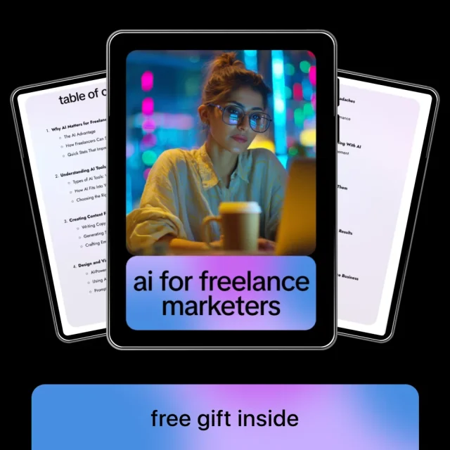 Don’t get left behind. Download AI for Freelance Marketers today and start transforming your freelance business with AI. Boost productivity, enhance creativity, and stay ahead of the competition with the ultimate guide designed specifically for freelance marketers.