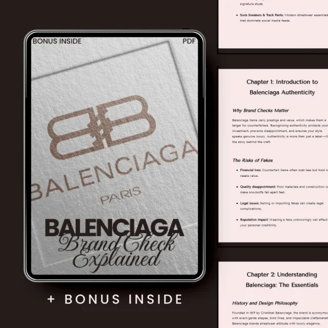 This eBook is perfect for anyone who wants to gain a deeper understanding of Balenciaga products, including collectors, online shoppers, resellers, and anyone who values luxury fashion. It’s also ideal for those who are new to the world of high-end brands and want to learn how to confidently verify their purchases.