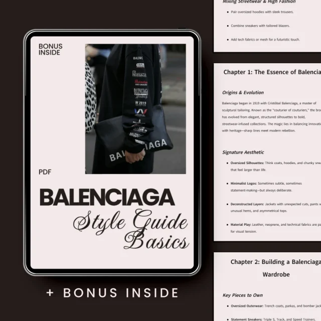 This ebook is ideal for streetwear fans, luxury fashion admirers, stylists, content creators, and anyone curious about refining their personal style. If you’ve ever saved Balenciaga looks on Pinterest or Instagram and wondered how to translate them into everyday outfits, this guide is for you.