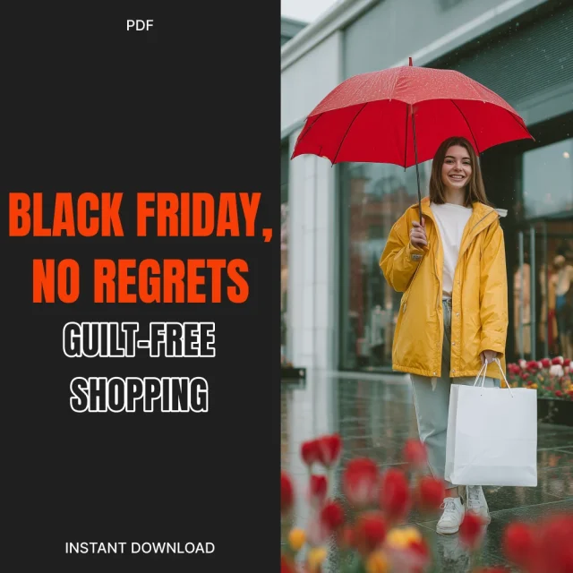 Say goodbye to post-sale regret and hello to empowered, guilt-free shopping with Black Friday, No Regrets: Guilt-Free Shopping — your all-in-one digital guide designed to help you spend smart, shop mindfully, and stay in control. This downloadable eBook and checklist blend practical financial strategy with mindful habits so you can fully enjoy the best deals without emotional or financial backlash. Whether you’re a deal-hunter, a busy parent, or simply someone who wants to make smarter choices, this guide is your ultimate companion for a stress-free Black Friday.