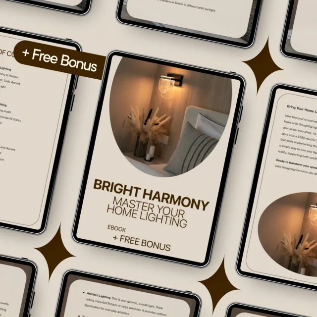 Bright Harmony: Master Your Home Lighting is a digital download you can access instantly. If you’re ready to transform your home into a space that looks better, feels better, and works better, download this ebook today and start mastering your lighting with confidence.