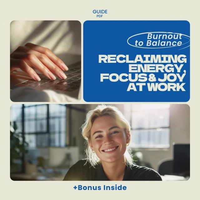 You deserve a career that energizes you instead of draining you. With Burnout to Balance: Reclaiming Energy, Focus, and Joy at Work, you’ll gain the tools, strategies, and confidence to reset your routine and build a healthier relationship with work.
