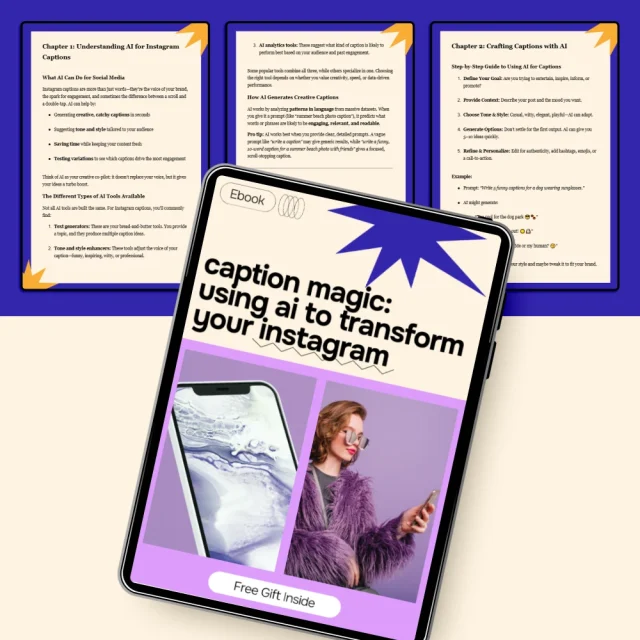 If you’re ready to simplify your workflow, grow your engagement, and confidently use AI as a creative partner, Caption Magic: Using AI to Transform Your Instagram is your next must-have resource. Download your copy today and start turning ideas into scroll-stopping captions.