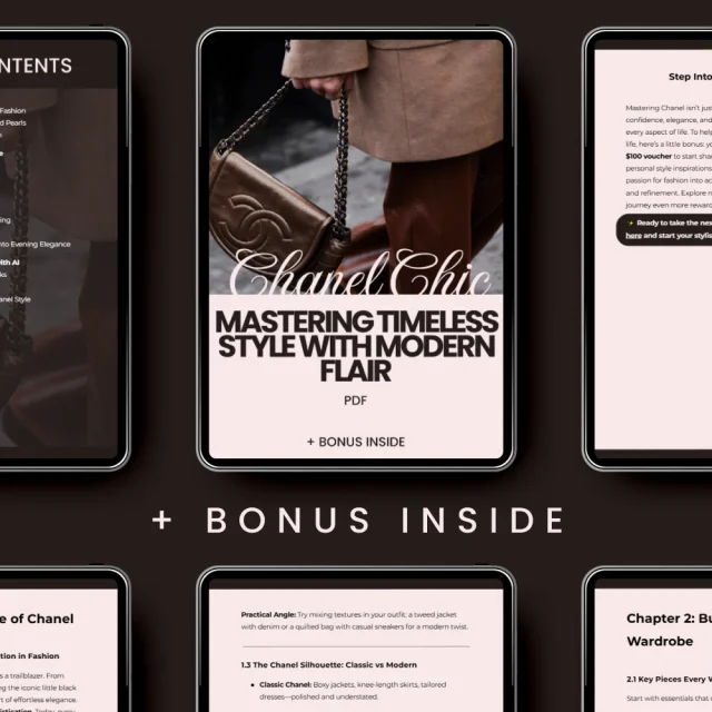 Inside this comprehensive eBook, you’ll discover essential tips and tricks that help you incorporate Chanel’s signature elements into your everyday outfits. From iconic tweed and quilting to the perfect layering techniques, this guide covers all the basics and more. By mastering the classic Chanel silhouette while adding a modern twist, you’ll feel effortlessly chic at all times.