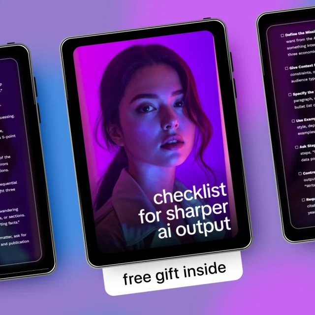 Stop guessing how to prompt AI and start using a proven system. Download the Checklist for Sharper AI Output today and transform how you work with AI—faster results, clearer answers, and more confidence with every prompt. Add it to your digital toolkit now and see the difference immediately.