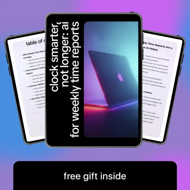 Unlike generic AI tutorials, this guide focuses specifically on weekly time reporting. It doesn’t promise magic automation or unrealistic shortcuts. Instead, it shows how to thoughtfully integrate AI where it actually helps, while keeping you in control of accuracy and client expectations.