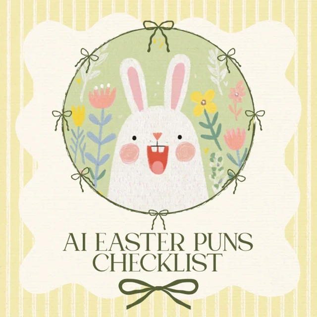 Ready to hatch a basket full of hilarious, scroll-stopping Easter puns? Crack Up Your Creativity: AI Easter Puns Checklist is your step-by-step digital guide to creating clever, shareable wordplay using artificial intelligence. Whether you’re a small business owner, content creator, teacher, or pun-loving human, this checklist shows you exactly how to use ai to generate easter puns list after list of giggle-worthy gold. No guesswork. No creative blocks. Just smooth, simple prompts and a clear system that helps your ideas bloom like spring flowers.