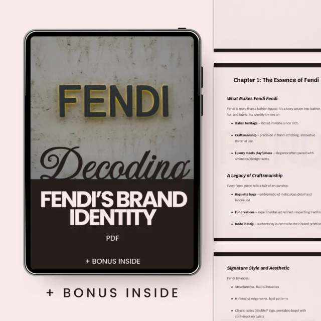 Discover the story behind one of the most iconic luxury fashion brands in the world with our exclusive eBook, Decoding Fendi’s Brand Identity. This detailed guide dives deep into the essence of Fendi, unpacking the legacy, craftsmanship, and visual language that make the brand instantly recognizable. Whether you’re a brand strategist, a marketer, or simply a fashion enthusiast, this eBook will provide you with the tools to understand and apply Fendi’s branding strategies to your own work or business.