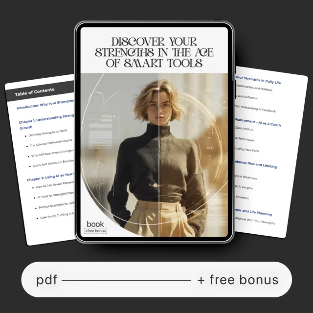 Download “Discover Your Strengths in the Age of Smart Tools” now and learn how to use AI to discover my strengths. Step into the future of self-awareness and start building a more confident, focused, and fulfilled version of yourself today.