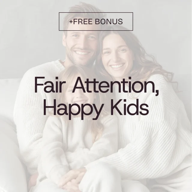 Download Fair Attention, Happy Kids today and start creating predictable moments of connection that will leave your kids feeling secure and happy. Take control of the chaos and transform the way your family experiences love and attention.