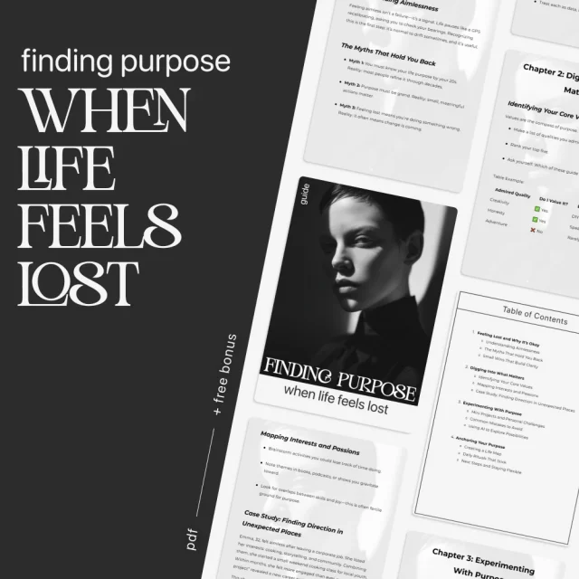 It’s easy to lose your sense of direction in a fast-moving world. Finding Purpose When Life Feels Lost is a thoughtful digital guide designed to help you slow down, reflect, and reconnect with what truly matters. Through gentle exercises, real-life examples, and modern tools, this guide walks you through ways to find purpose when life feels aimless—so you can build a life rooted in clarity, confidence, and joy. Perfect for anyone craving a sense of meaning, this printable guide gives you structure without pressure and hope without false promises.