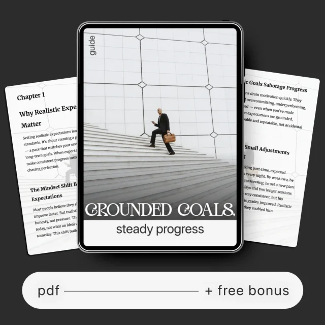 Progress should feel peaceful, not pressured. Download Grounded Goals, Steady Progress today and learn how to set realistic expectations for yourself that truly align with who you are and where you’re headed. Create a system that grows with you—one step, one goal, one grounded success at a time.