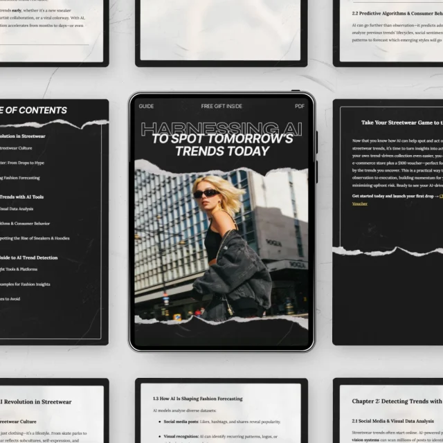 Don’t get left behind—take advantage of the future of fashion today! Download Harnessing AI to Spot Tomorrow’s Trends Today and start leveraging artificial intelligence to detect the next big trends in streetwear. With this guide, you’ll have all the knowledge and tools you need to make smarter, more informed decisions that will set your brand apart from the competition.