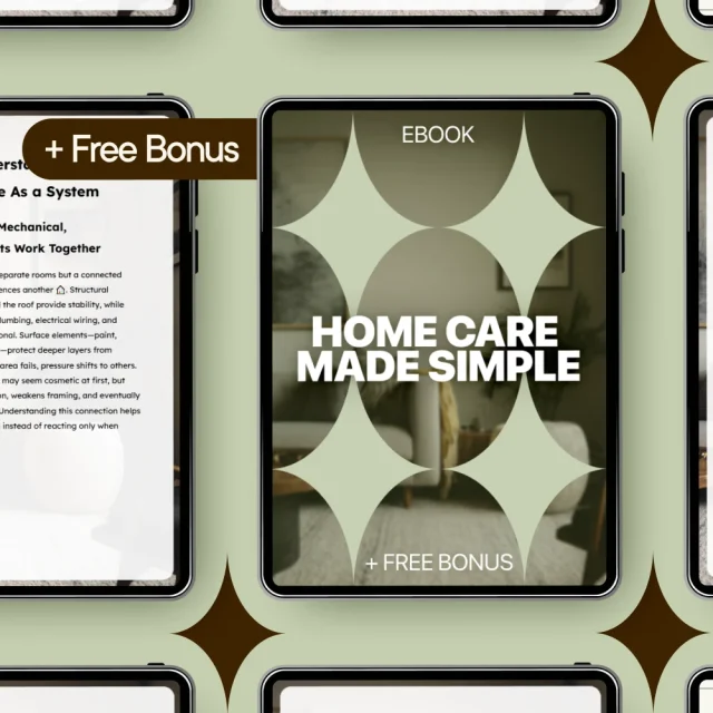 Take the guesswork out of home care and start feeling confident in your space. Download Home Care Made Simple today and give yourself a clear, beginner-friendly roadmap to smarter home maintenance.