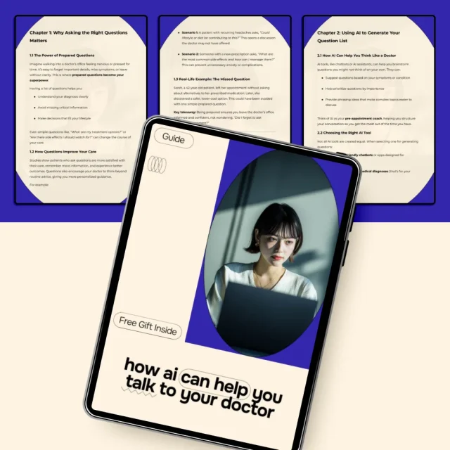 Stop leaving your doctor’s office with unanswered questions. Download How AI Can Help You Talk to Your Doctor now and start using AI for generating a list of questions to ask your doctor—because every appointment deserves your best preparation.