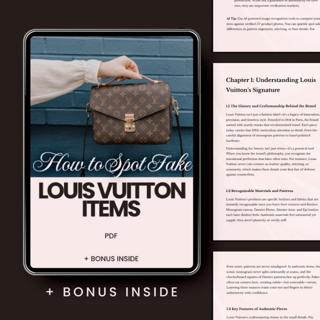 • Chapter 2: Common Red Flags in Fake Louis Vuitton Items – Recognize signs of counterfeit products such as price points, logos, stitching, and hardware mistakes.