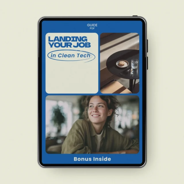 Don’t wait to build a meaningful, future-proof career. Download Landing Your Job in Clean Tech today and finally learn how to get a job in clean tech with clarity, confidence, and direction. Your clean energy career starts here.