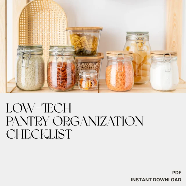 Say goodbye to cluttered shelves and forgotten ingredients. Download the Low-Tech Pantry Organization Checklist today and start using low tech ways to keep pantry organized—so your kitchen becomes a space that’s functional, peaceful, and easy to maintain. Perfect for anyone ready to take small, simple steps toward a more mindful home.