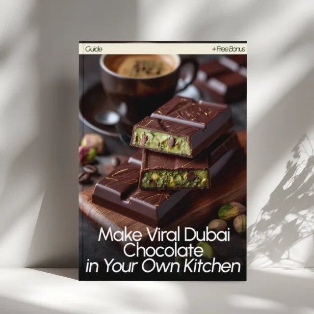 Don’t wait to bring the indulgence of Dubai chocolate to your kitchen. Download your copy of Make Viral Dubai Chocolate in Your Own Kitchen today and start crafting pistachio-filled chocolate bars that will impress, delight, and even go viral!