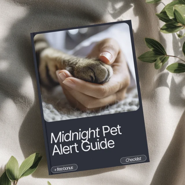 Don’t wait for an emergency to catch you off guard. Download the Midnight Pet Alert Guide today and be prepared for those late-night pet emergencies. Whether it’s a sudden collapse, difficulty breathing, or a change in behavior, this guide helps you spot the signs and take action fast. Keep your pet safe and secure with this essential checklist.
