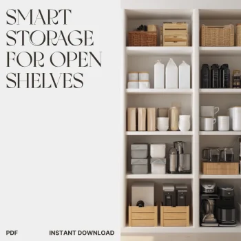Shelf Savvy: Smart Storage for Open Shelves | Printable Home Organization Checklist | How to Use Storage to Declutter Open Shelves | Digital Download