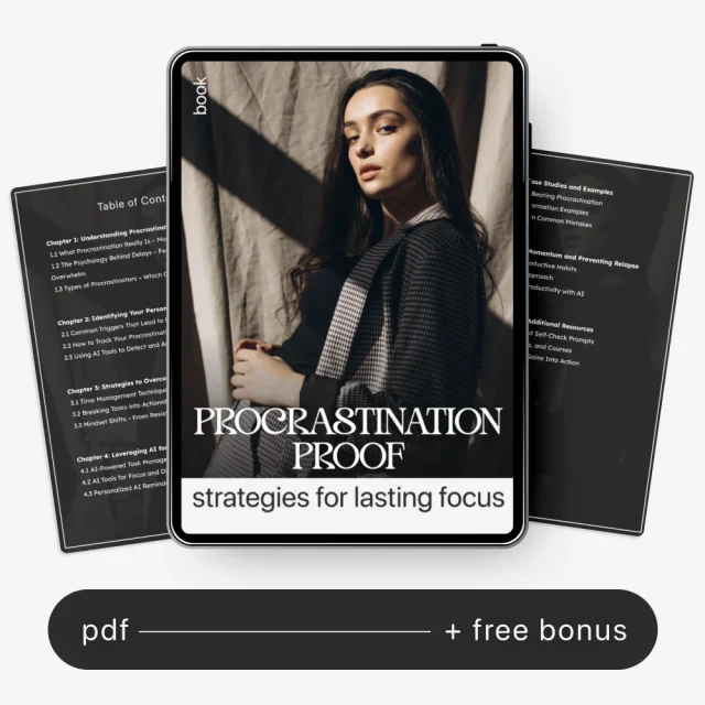 Are you tired of starting the day with big goals, only to watch hours slip away? Procrastination Proof: Strategies for Lasting Focus is your complete digital guide to finally mastering productivity. This eBook helps you understand why procrastination happens and gives you practical, science-backed methods to stop delaying and start doing. Whether you’re a student, entrepreneur, or professional, you’ll find proven tools to sharpen your focus, manage time effectively, and use AI to keep your motivation on track. If you’ve been searching for how to overcome procrastination once and for all, this is your go-to resource.