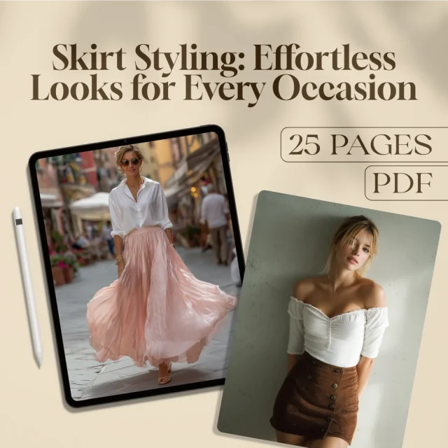Discover the ultimate guide to mastering how to style skirts with ease and elegance. Skirt Styling: Effortless Looks for Every Occasion is your go-to digital download packed with expert tips, outfit ideas, and styling secrets. Whether you’re heading to brunch, the office, or a glamorous evening event, this guide will help you create chic, flattering looks that work for your body shape and personal style. Perfect for beginners and seasoned fashion lovers alike, this beautifully organized resource ensures you’ll never feel unsure about pairing, accessorizing, or choosing the right skirt again.