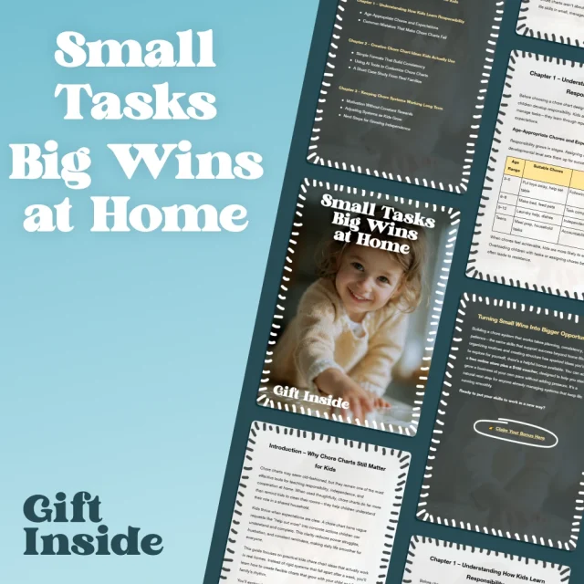 Looking for an easy way to get your kids involved in chores while teaching them valuable life skills? Our guide, Small Tasks Big Wins at Home, offers a practical, fun, and easy-to-follow approach to setting up kids’ chore charts that actually work. From age-appropriate tasks to creative formats and AI customization, this guide provides everything you need to create a system that your kids will love and stick to. Say goodbye to chore chart struggles and hello to a smoother, more organized home.