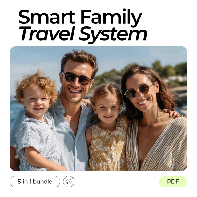 Traveling with your family just got a whole lot smarter. The Smart Family Travel System is a complete 5-in-1 digital bundle designed to make family vacations effortless, organized, and fun. From packing efficiently to planning the perfect itinerary, this collection uses AI to help families save time, reduce stress, and enjoy every moment of their journey. Whether you’re a seasoned traveler or embarking on your first family getaway, this system gives you the tools to travel smarter, not harder.
