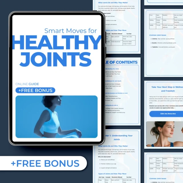 Unlike generic fitness guides, Smart Moves for Healthy Joints combines practical joint education with real-life workout examples and modern AI tools. You’re not just told what to avoid—you’re shown how to adapt, improve, and build joint-friendly routines that actually fit your lifestyle.