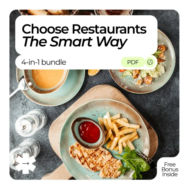 Eating well while traveling shouldn’t be a gamble. Say goodbye to overpriced, underwhelming meals at tourist trap restaurants with our 4-in-1 digital bundle, Smart Way to Choose Restaurants While Traveling. This all-in-one collection of guides, checklists, and AI-powered strategies is designed to help you uncover the best local dining spots, whether you’re hunting for a hidden gem or a Michelin-star experience. Perfect for curious food lovers, savvy travelers, and anyone who wants to enjoy authentic meals without the hassle.
