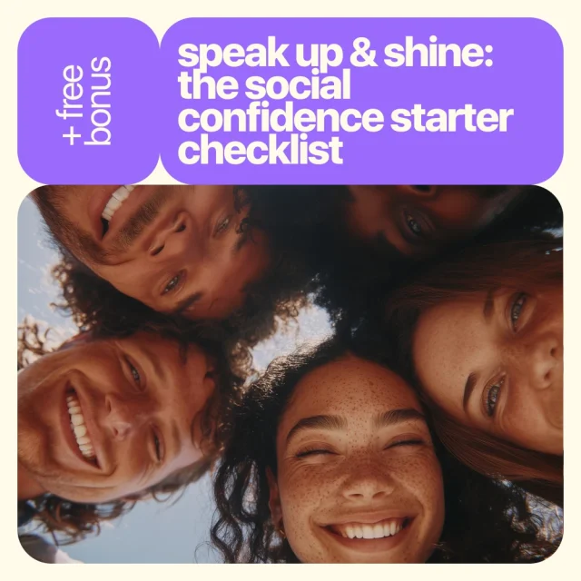 Ready to speak up and shine? Download your copy of the Speak Up & Shine: The Social Confidence Starter Checklist today and start your journey towards confident conversations and stronger social connections. Don’t let fear hold you back – take the first step now!
