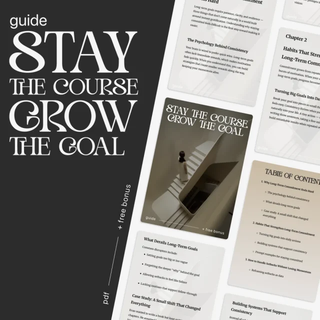 Your goals deserve your commitment—and this guide helps you protect it. Download Stay the Course, Grow the Goal today and discover how to stay committed to long-term goals through clear habits, supportive systems, and steady self-belief. Start turning consistency into your greatest advantage—one focused day at a time.