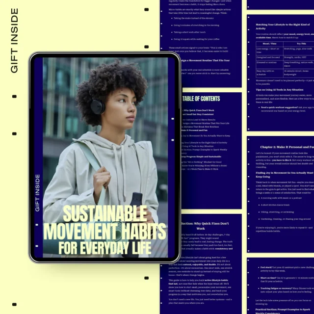Unlike generic fitness guides, Sustainable Movement Habits For Everyday Life prioritizes sustainability over intensity. It combines habit-building principles, mindset shifts, and modern tools like AI prompts to help you stay consistent without relying on motivation alone. The focus is on long-term integration, not temporary transformation.