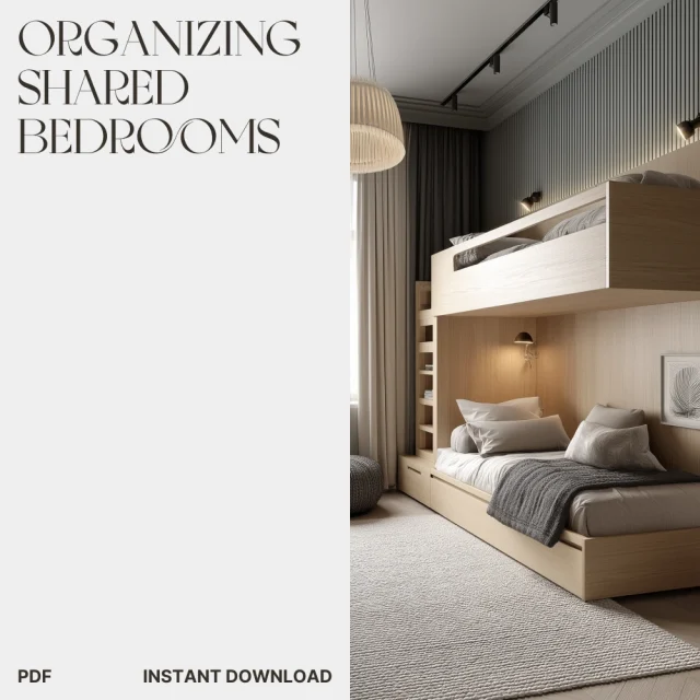 Stop stressing over mess and start creating balance today. Download The Checklist for Organizing Shared Bedrooms now and discover how to organize shared bedrooms with ease, clarity, and style. Your peaceful, clutter-free shared space starts here!