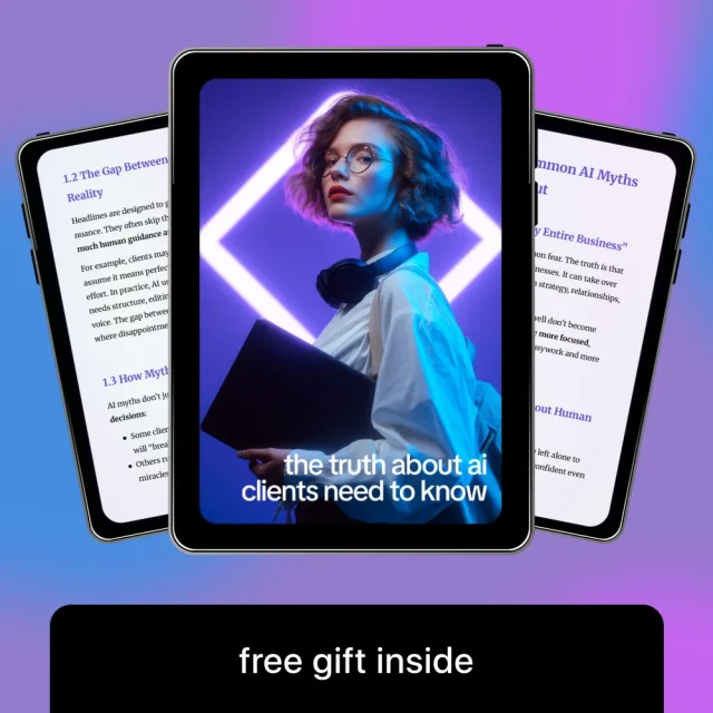 Stop struggling to explain AI on the spot. Download The Truth About AI Clients Need to Know today and gain a clear, professional resource you can rely on every time AI enters the conversation.
