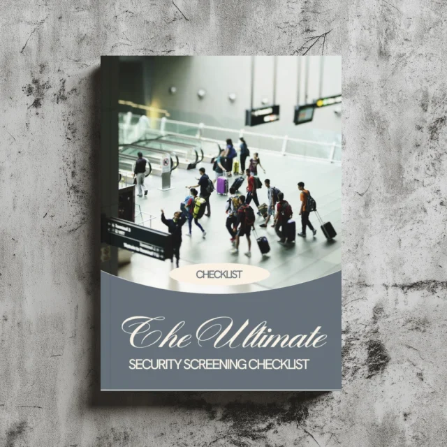 Each section is laid out in an easy-to-follow checkbox format, making The Ultimate Security Screening Checklist perfect for quick reviews or last-minute checks.