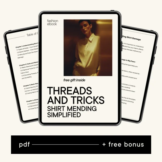 Is your favorite shirt starting to show signs of wear and tear? Don’t throw it away just yet! With the Threads and Tricks: Shirt Mending Simplified eBook, you’ll learn everything you need to know to repair holes and extend the life of your clothes. This comprehensive guide takes the guesswork out of shirt mending, offering step-by-step instructions and insider tips for repairs, whether you’re dealing with a small snag or a big tear. Say goodbye to expensive tailoring and hello to your new favorite DIY skill!