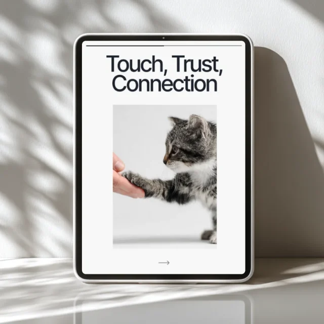 Strengthen your bond and transform your pet’s life with Touch, Trust, Connection. Download your digital guide now and start learning how to do t touch with your pet for a calmer, more connected relationship today.
