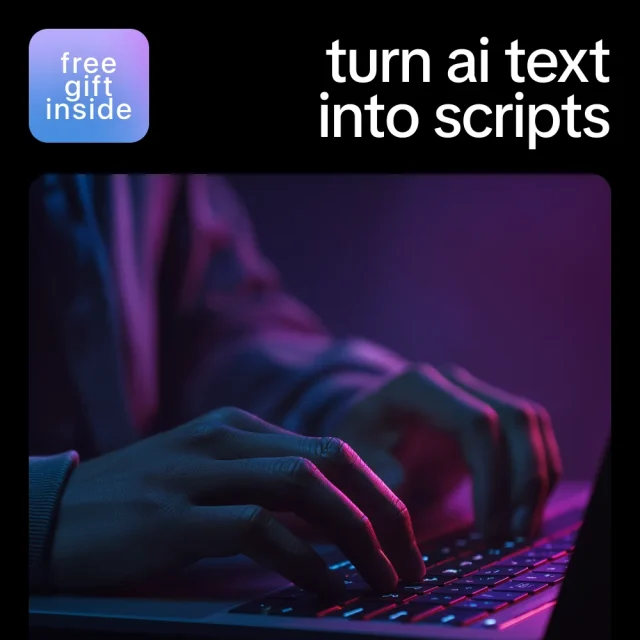 Don’t let raw AI text go to waste. Download Turn AI Text into Scripts today and start transforming ideas into polished, ready-to-use scripts that captivate your audience and save you hours of work.