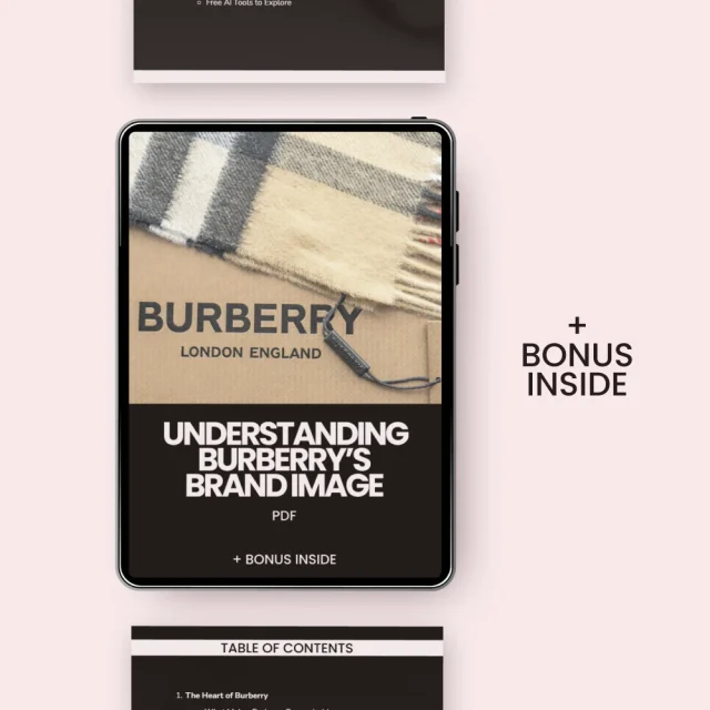Why download this guide? Unlike other digital resources, Understanding Burberry’s Brand Image offers a deep dive into the strategies that make Burberry a household name in luxury fashion. With a focus on both high-level branding principles and specific case studies, you’ll gain knowledge that’s both broad and detailed. Plus, with AI tools and creative prompts included, you’ll be ready to take your own branding efforts to the next level.