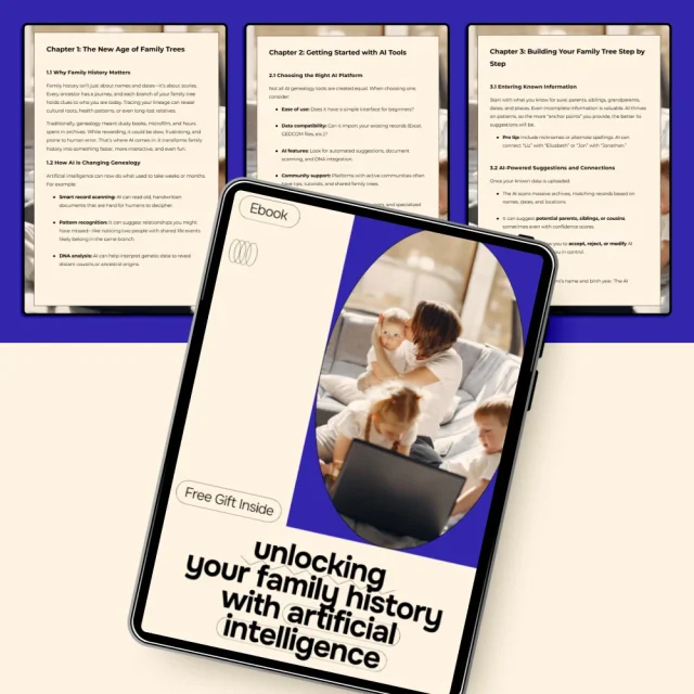 This digital guide walks you through every stage of AI-powered genealogy, from beginner basics to advanced techniques.