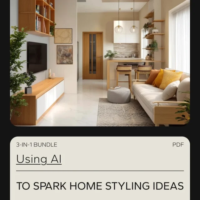 Discover the future of home styling with our exclusive 3-in-1 digital bundle, “Using AI to Spark Home Styling Ideas.” Whether you’re a DIY enthusiast, interior design beginner, or a seasoned decorator looking for fresh ideas, this bundle will guide you through the latest and most effective ways to use AI for designing and decorating your home. Packed with expert tips, creative prompts, and actionable checklists, this digital resource is all you need to turn your home into a stylish haven, effortlessly!