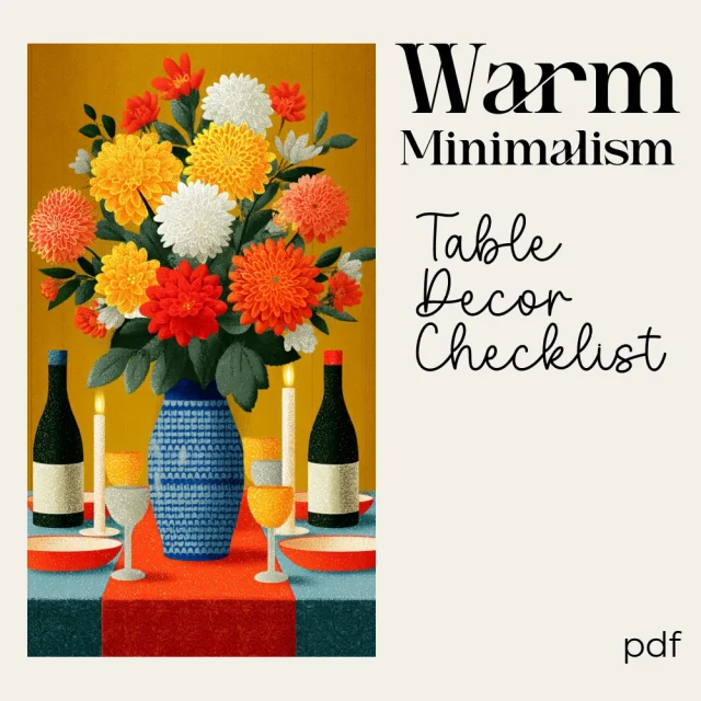 Download the Warm Minimalism Table Decor Checklist today and start designing a table that feels calm, inviting, and effortlessly elegant. Add it to your cart now and bring timeless warm minimalism table decor into your home with confidence and ease.