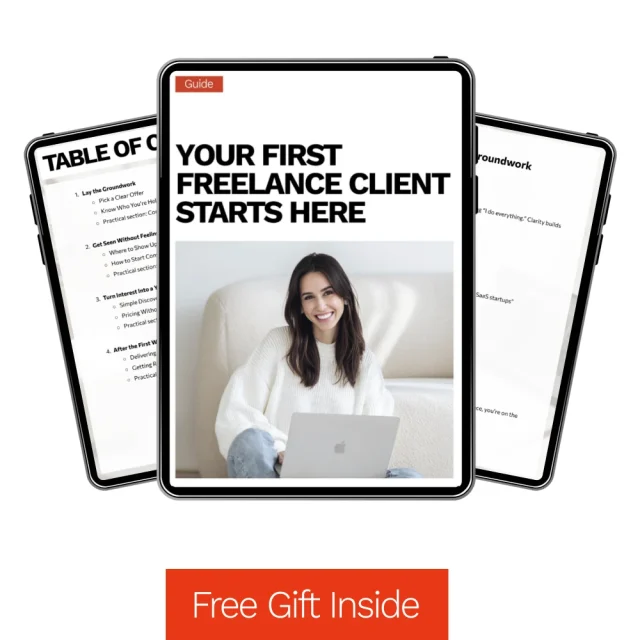 Don’t wait to start your freelance career. Download Your First Freelance Client Starts Here now and discover exactly how to get your first freelance client, step by step. Your first win is closer than you think.